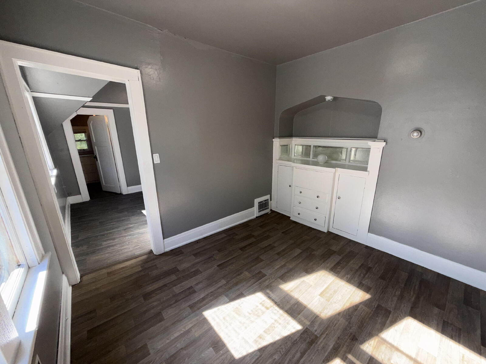 Eat-in kitchen with cabinet storage